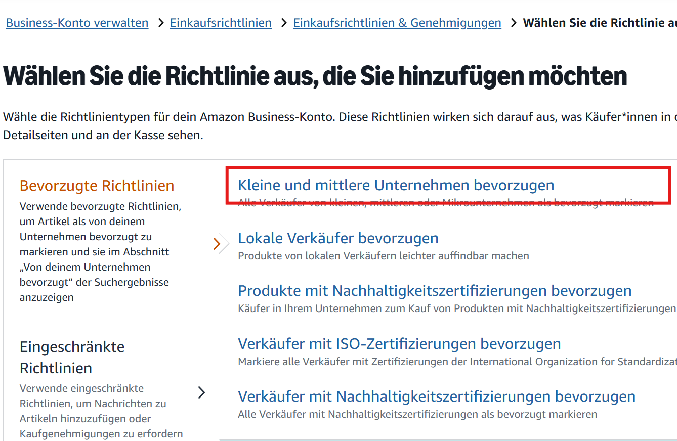 Setzen Sie Einkaufsrichtlinien, um KMUs* zu bevorzugen und Käufern klare Hinweise zu geben.